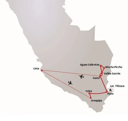 - Les vols intérieurs Lima / Arequipa et Cuzco / Lima sur vols réguliers Latam