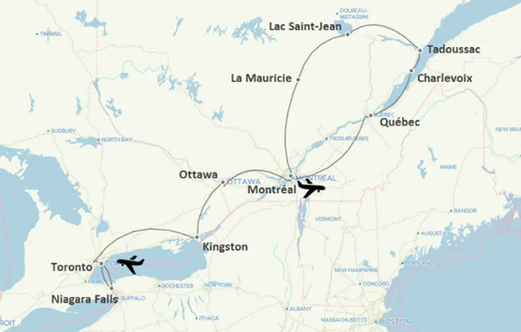 - Le transport aérien France / Toronto – Montréal / France sur vols réguliers AIR TRANSAT ou Air Canada (selon disponibilités).