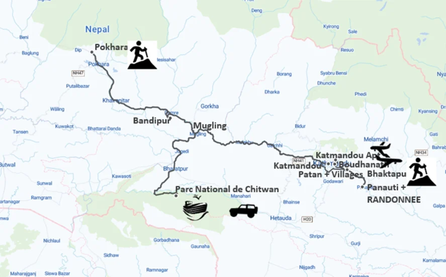 - Guide accompagnateur francophone de Kathmandu à Kathmandou (le guide ne séjourne pas dans les mêmes hôtels mais reste joignable si besoin).